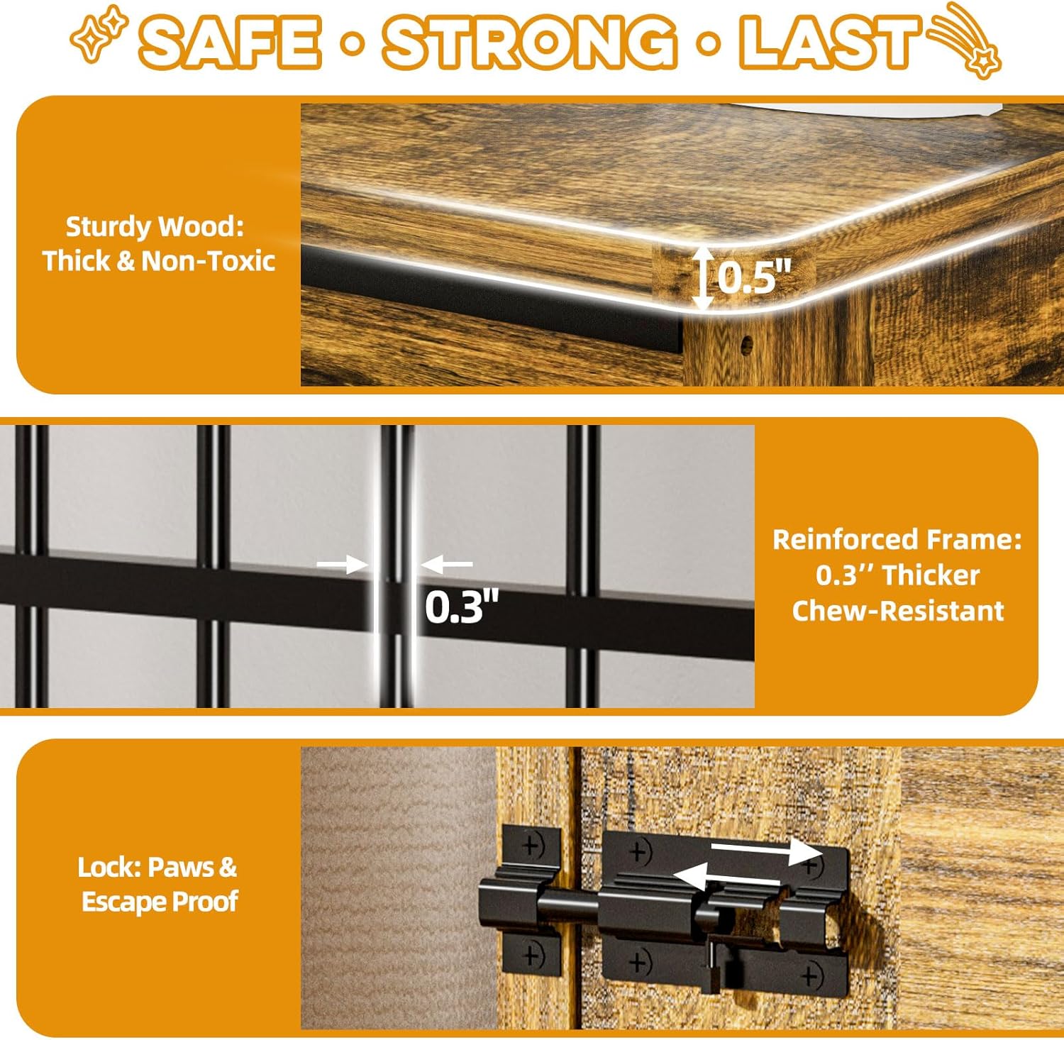 - Chew-Resistant & Durable Structure: Built with 0.3" reinforced steel bars and a 0.5" thick solid wood base. Supports long-term use without warping or breaking—even with energetic large dogs