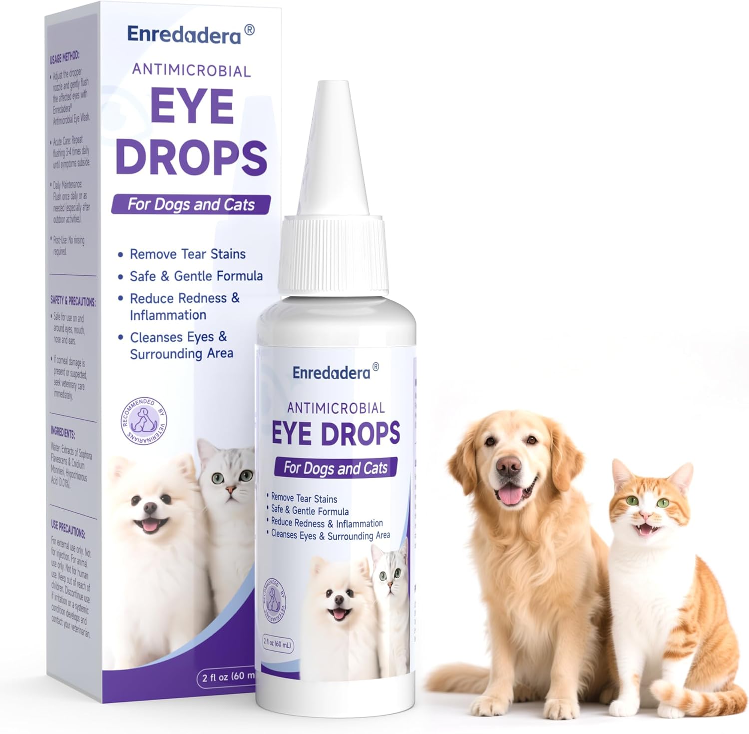 Enredadera Dog Eye Drops, Pet Eye Drops for Dogs and Cats, Vet-Approved Dog Eye Infection Treatment for Tear Stain Remover&Pink Eye Relief,Dog Conjunctivitis Eye Drops for Infection,Pet Eye Wash(60ml)