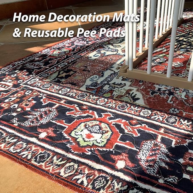 nunubaby Washable Pee Pads for Dogs, Stylish, Non-Slip and Leak-Proof Pee Pads. Reusable Potty Pads for Dogs for Crates and Floors.(Red/Rect, 24" x36" )