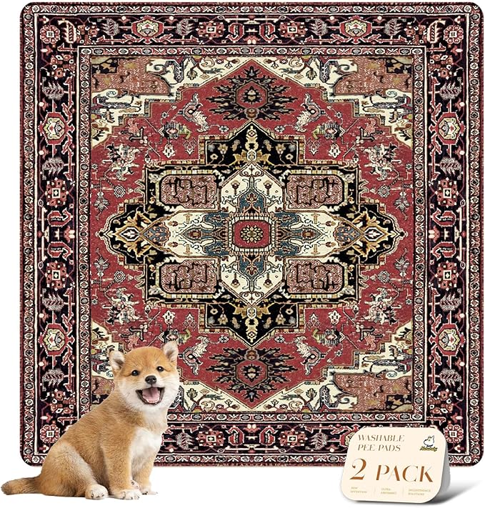 nunubaby Washable Pee Pads for Dogs, Stylish, Non-Slip and Leak-Proof Pee Pads. Reusable Potty Pads for Dogs for Crates and Floors.(Red/Rect, 36" x36" )