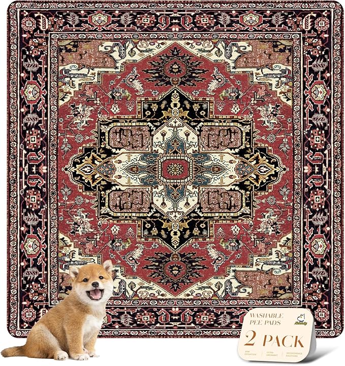nunubaby Washable Pee Pads for Dogs, Stylish, Non-Slip and Leak-Proof Pee Pads. Reusable Potty Pads for Dogs for Crates and Floors.(Red/Rect, 54" x54" )