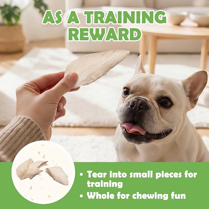 - [Whole-Cut for Versatile Feeding] The unique whole-cut shape provides a satisfying chewing texture. It can be easily broken into smaller pieces for training, crumbled as a meal topper, or softened in water.