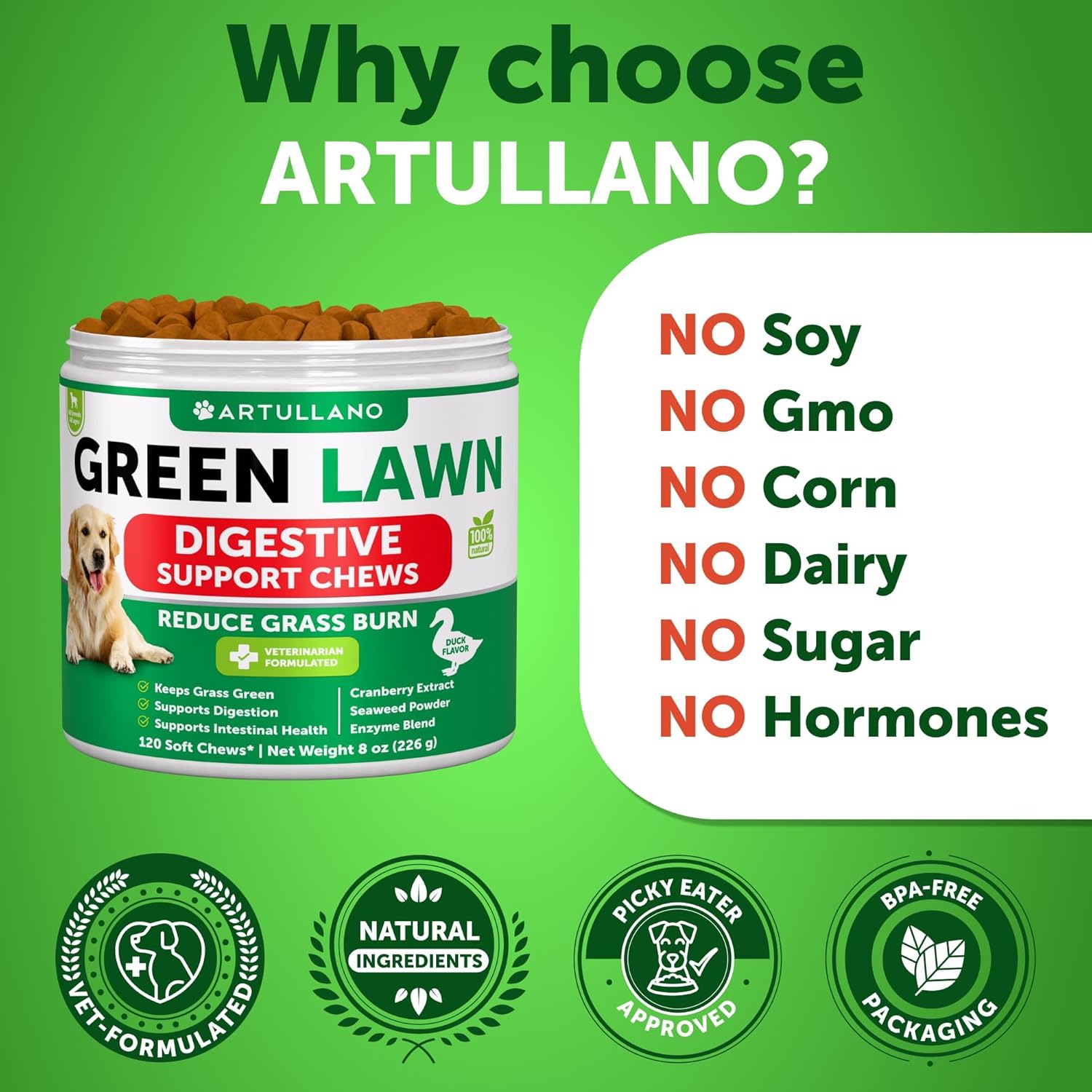 Grass Burn Spot Chews for Dogs - Pee Lawn Spot Saver Caused by Dog Urine - Grass Treatment Rocks - Urine Neutralizer for Green Lawn - Chewable Probiotics, Digestive Enzymes, DL-Methionine - 120 Treats