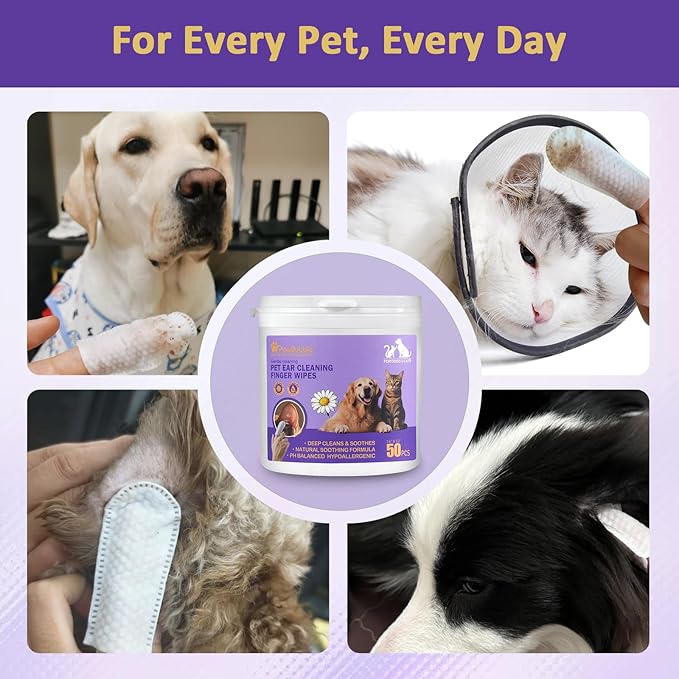 PawBubble Ear Wipes for Dogs and Cats, Dog Ear Finger Wipes, Gentle Ear Cleaner for Wax, Dirt & Odor, Relieves Discomfort & Soothes Ears, Non-Irritating, 50 Count