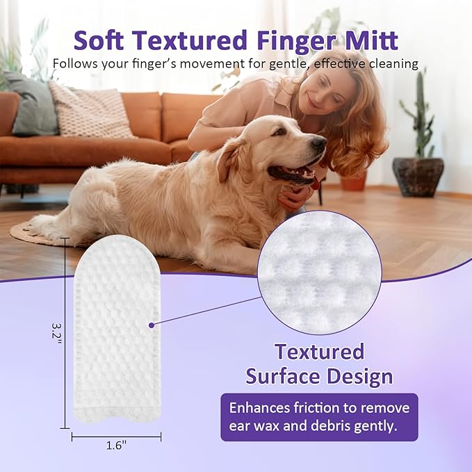 - Finger-Mitt Design: PawBubble wipes feature a finger-mitt design for enhanced control and comfort. The mitt allows you to easily reach deep into ear folds, ensuring a thorough clean with a gentle touch for your pet’s delicate ears