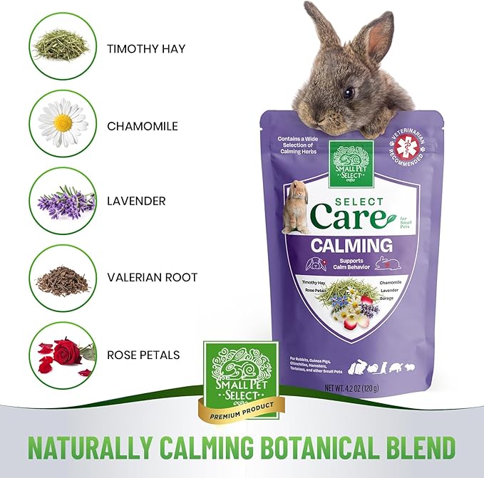 Small Pet Select - Select Care Calming Support Supplement, Natural High Fiber Timothy Hay Based Treats for Rabbits, Guinea Pigs, Hamsters, Other Small Animals, 4.2 oz